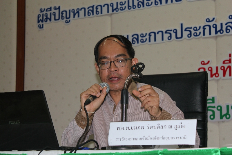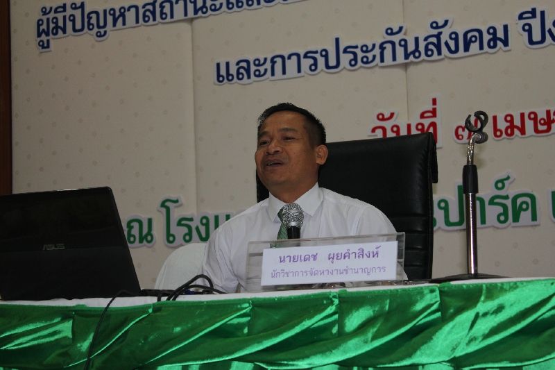 จุดประสงค์ : เพื่อให้เจ้าหน้าที่สาธารณสุขประจำหน่วยบริการสาธารณสุขทุกแห่งได้รับ ความรู้ ข้อมูลข่าวสาร เกี่ยวกับ ดำเนินงานด้านประกันสุขภาพแรงงานต่างด้าว ผู้มีปัญหาสถานะสิทธิ และสิทธิงานพระราชบัญญัติคุ้มครองผู้ประสบภัยจากรถ และการประกันสังคม