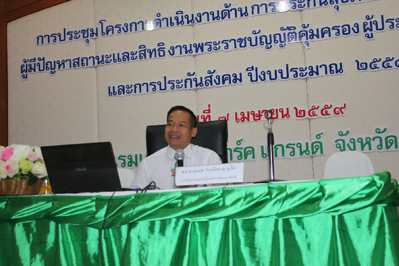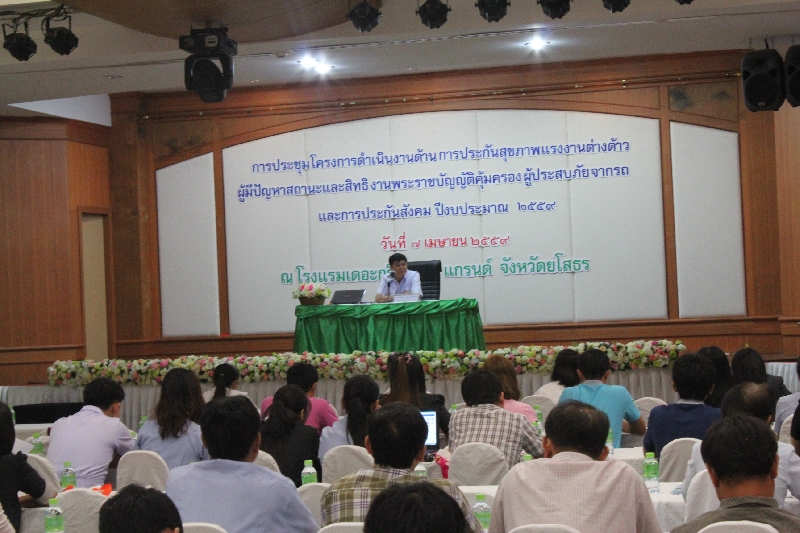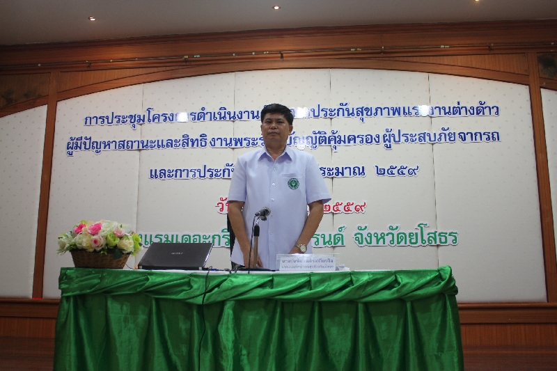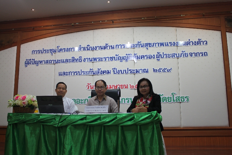 กิจกรรม : การประชุมโครงการดำเนินงานด้านประกันสุขภาพแรงงานต่างด้าว ผู้มีปัญหาสถานะสิทธิ และสิทธิงานพระราชบัญญัติคุ้มครองผู้ประสบภัยจากรถ และการประกันสังคม ปีงบประมาณ ๒๕๕๙